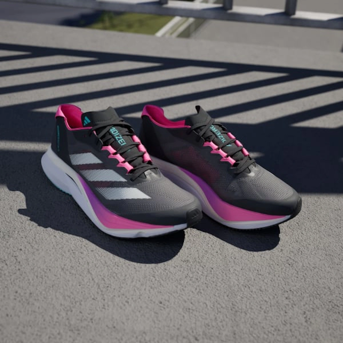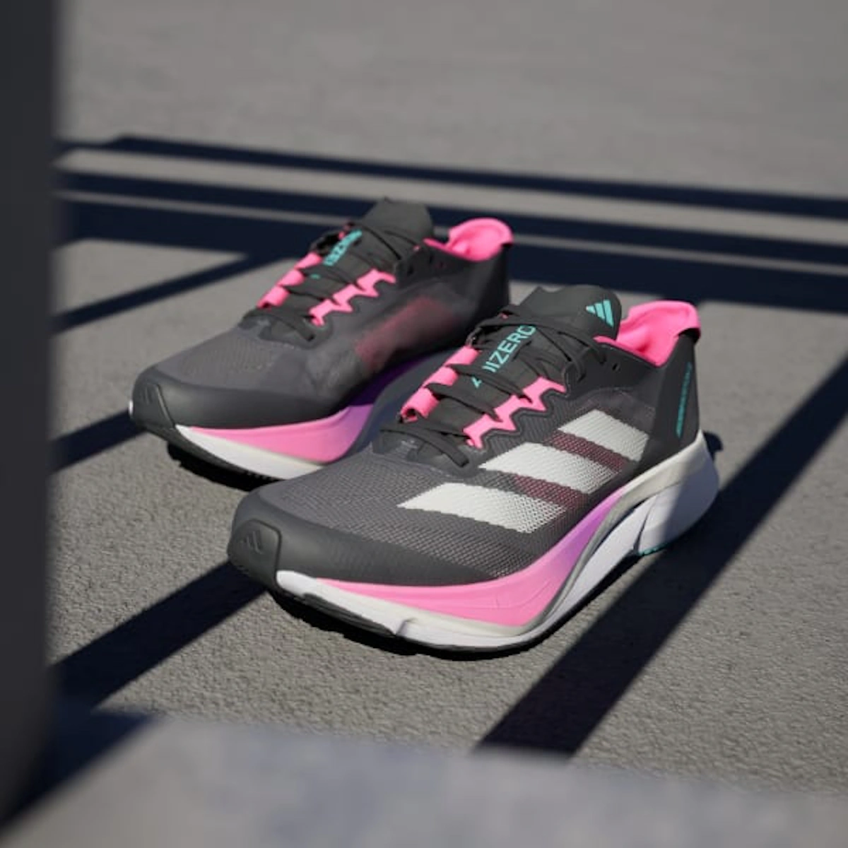 adidas Adizero Boston 12 — Grey Five/Crystal Jade/Lucid Pink