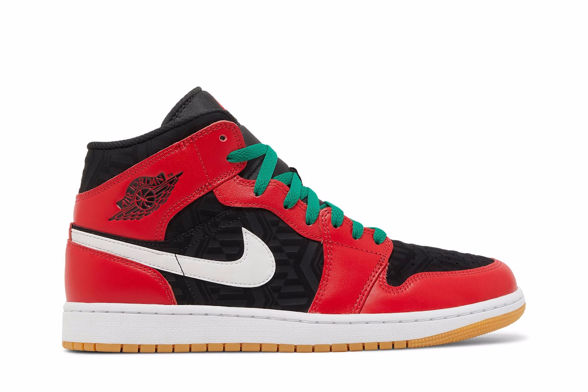 Jordan Jordan 1 Mid — Black/Fire Red/White/Malachite