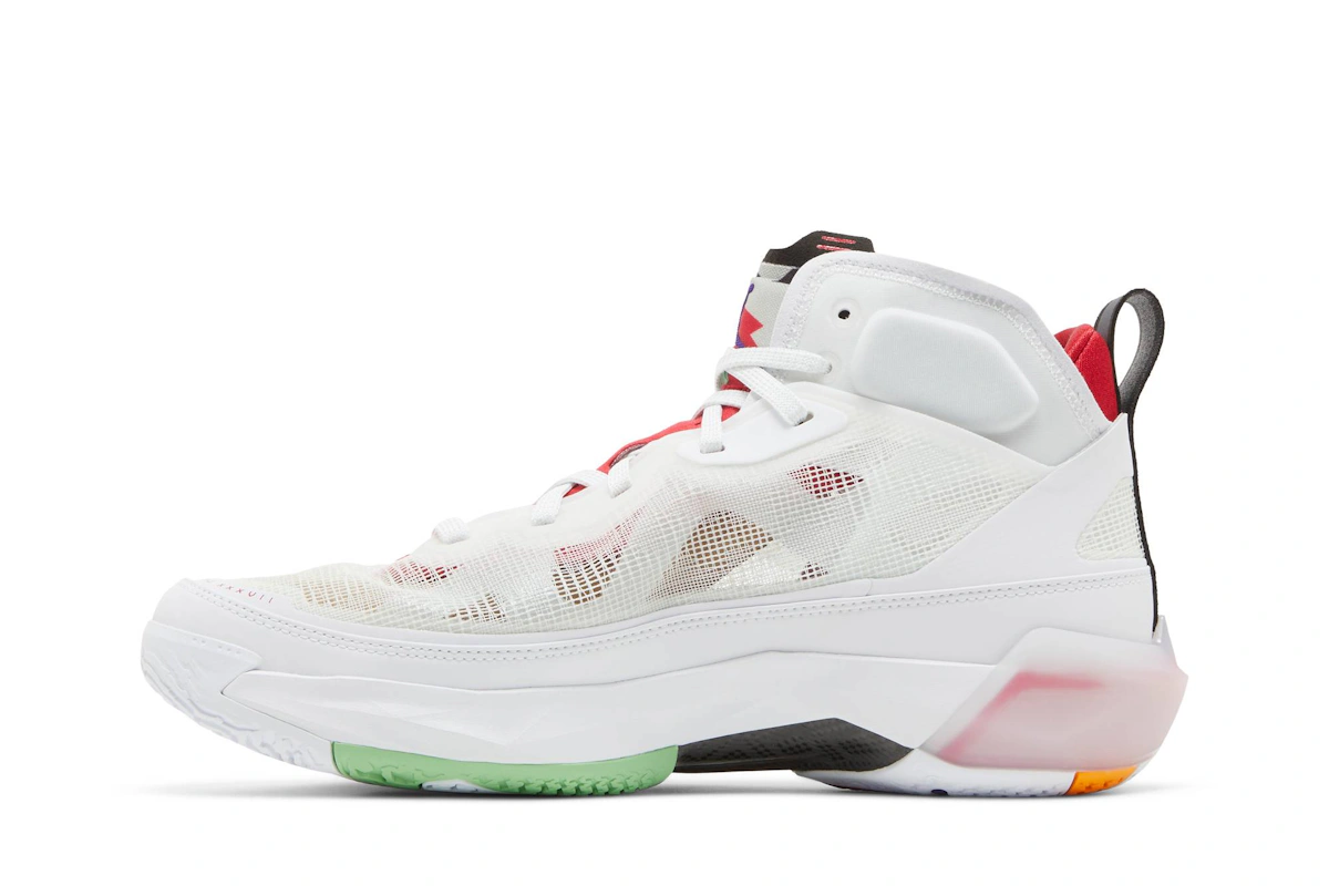 Wir präsentieren den Air Jordan 37 PF Hare, ein Must-have der renommierten Jordan-Marke. Dieser Sneaker kommt in der stylischen Farbkombination Weiß/Rot und verleiht jedem Outfit das gewisse Etwas. Mit seinem ikonischen Design und der hochwertigen Verarbeitung ist dieser Schuh eine wahre Verkörperung der Jordan-Tradition. Bring deinen Sneaker-Style mit dem Air Jordan 37 PF Hare auf ein neues Level.