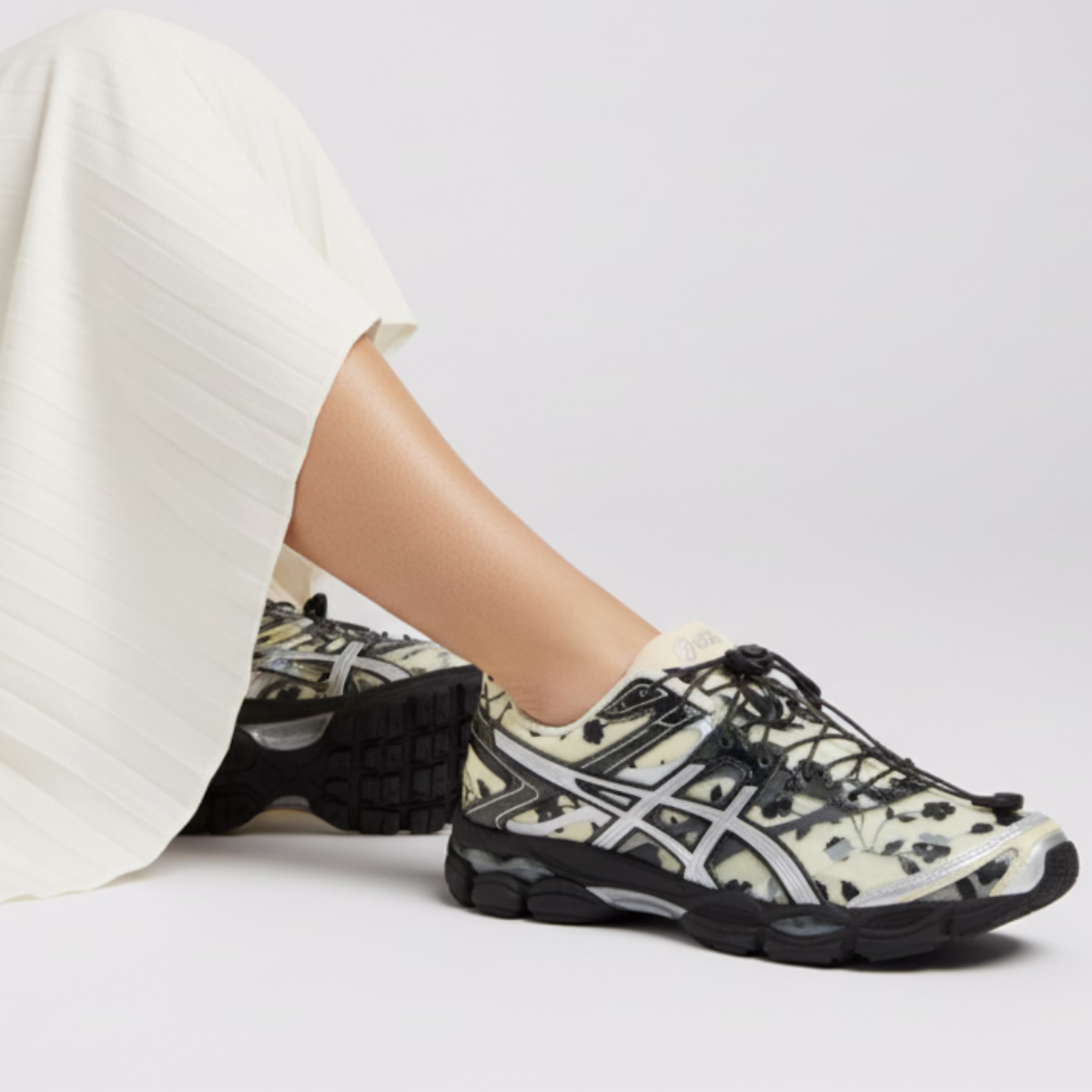 Der Cecilie Bahnsen x ASICS Gel Cumulus 16 „Ivory Black“ (1203A762-750) ist eine luxuriöse Kollaboration, die die leistungsstarke Gel-Technologie von ASICS mit Cecilie Bahnsens charakteristischer romantischer Ästhetik vereint. Der Schuh besticht durch eine sanfte Farbkombination aus Elfenbein und Schwarz, hochwertige Materialien und eine gepolsterte Zwischensohle für ganztägigen Tragekomfort ”“ perfekt für alle, die Wert auf Stil und Funktionalität legen.