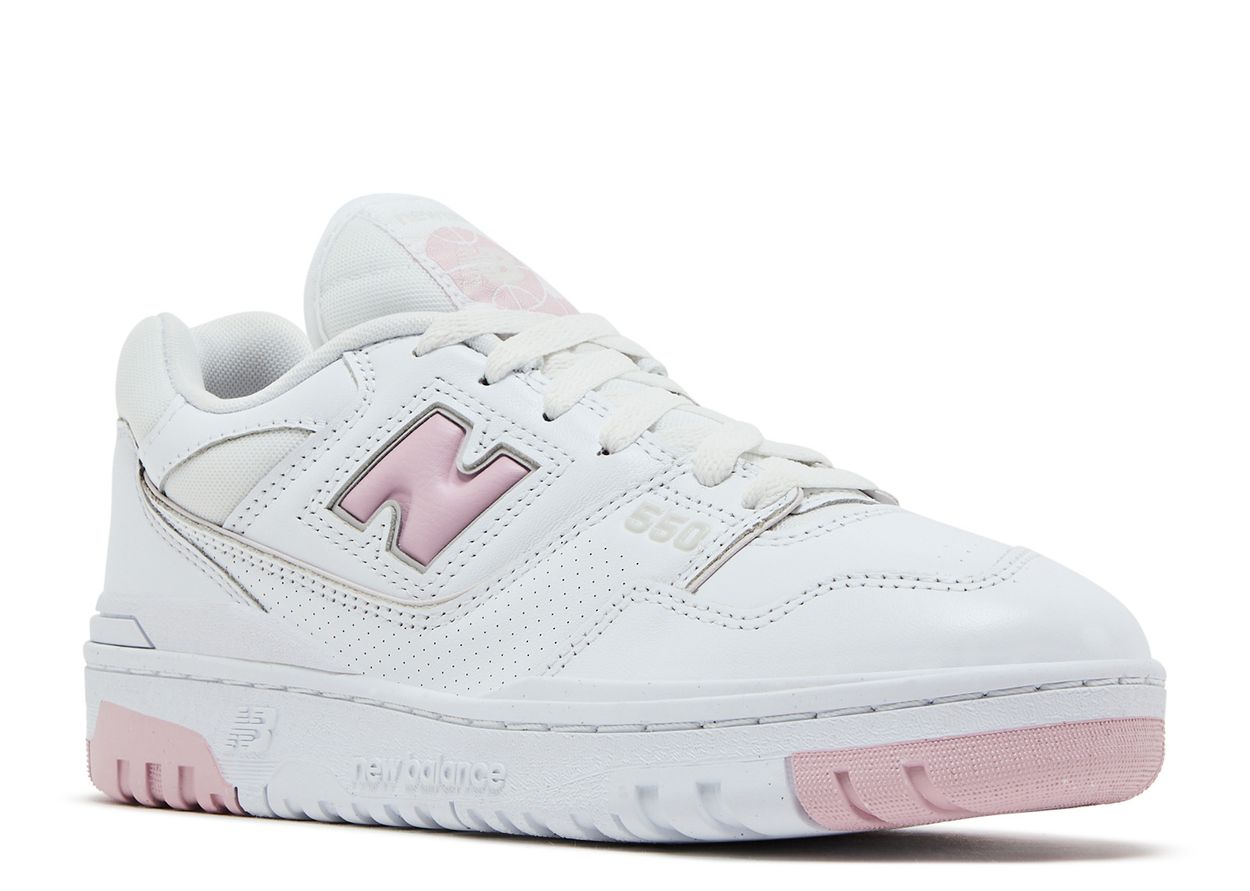 Der New Balance Damenschuh 550 „White Twilight Haze“ besticht durch ein weißes Leder-Obermaterial mit gepolstertem Mesh-Kragen und mikroperforierten Details im Mittelfußbereich. Ein pastellrosa, geformtes „N“-Logo harmoniert perfekt mit dem New Balance-Etikett auf der Nylonzunge. Die Gummisohle mit sichtbarem Schaumstoffkeil sorgt für angenehme Dämpfung.