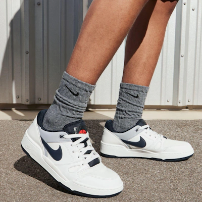 Mit dem Nike Full Force Low 'Platinum Dark Obsidian' FB1362-002 vereinst du Style und Performance auf einzigartige Weise. Dieser Schuh besticht durch eine gelungene Kombination aus Retro-Basketball-Design und modernem Tragekomfort. Das hochwertige Leder-Obermaterial in elegantem Platingrau mit kontrastierenden Akzenten in dunklem Obsidian verleiht ihm einen anspruchsvollen und gleichzeitig sportlichen Look, der sich mühelos mit jedem Outfit kombinieren lässt. Die flache Silhouette sorgt für einen vielseitigen Look, während die gedämpfte Mittelsohle ganztägigen Tragekomfort auf und neben dem Court bietet. Die strapazierfähige Gummiaußensohle mit Traktionsprofil bietet zuverlässigen Grip und Halt und macht den Schuh perfekt für sportliche Aktivitäten und den Alltag. Egal, ob du deinen Streetwear-Style aufpeppen oder einfach einen bequemen und stylischen Sneaker suchst: Der Nike Full Force Low „Platinum Dark Obsidian“ ist perfekt auf deinen dynamischen Lifestyle abgestimmt.
