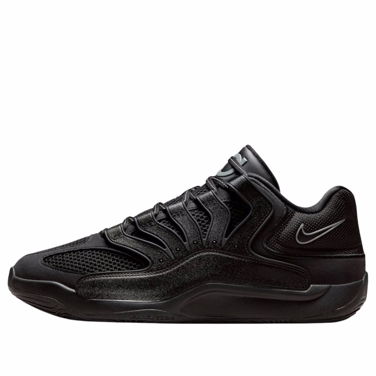 Der Nike KD 18 „Triple Black“ (IM0634-001) ist ein eleganter, komplett schwarzer Basketballschuh, der innovative Technologie mit einem markanten, minimalistischen Design für kompromisslose Performance und universelle Attraktivität vereint. In Zusammenarbeit mit Kevin Durant entwickelt, zeichnet sich dieser Schuh durch eine fortschrittliche, leichte Konstruktion aus, die unvergleichlichen Halt und Flexibilität auf dem Court bietet. Ausgestattet mit durchgehender Zoom Air Strobel-Dämpfung liefert er reaktionsschnelle Energierückgabe für maximalen Komfort bei intensiven Spielen. Das multidirektionale Traktionsmuster der strapazierfähigen Außensohle sorgt für hervorragenden Grip und Kontrolle und ermöglicht schnelle Richtungswechsel und explosive Bewegungen. Ein hochwertiges Obermaterial aus Funktionsmesh verbessert die Atmungsaktivität und bietet gleichzeitig eine eng anliegende, adaptive Passform für mehr Stabilität und sicheren Halt. Das monochrome Schwarz-in-Schwarz-Design strahlt mühelose Eleganz aus und macht den Schuh zu einer vielseitigen Wahl für den Court und die Freizeit. Der Nike KD 18 „Triple Black“ vereint auf elegante Weise hohe Performance mit moderner Ästhetik und ist der perfekte Begleiter für Athleten und Sneaker-Fans, die Wert auf Strapazierfähigkeit, Agilität und zeitlosen Stil legen. Erlebe unvergleichliche Spielbarkeit und herausragende Vielseitigkeit mit diesen meisterhaft gefertigten Basketballschuhen, die für alle entwickelt wurden, die sowohl auf dem Spielfeld als auch auf der Straße dominieren. Verbessere dein Spiel und deinen Style mit dem Nike KD 18 „Triple Black“.