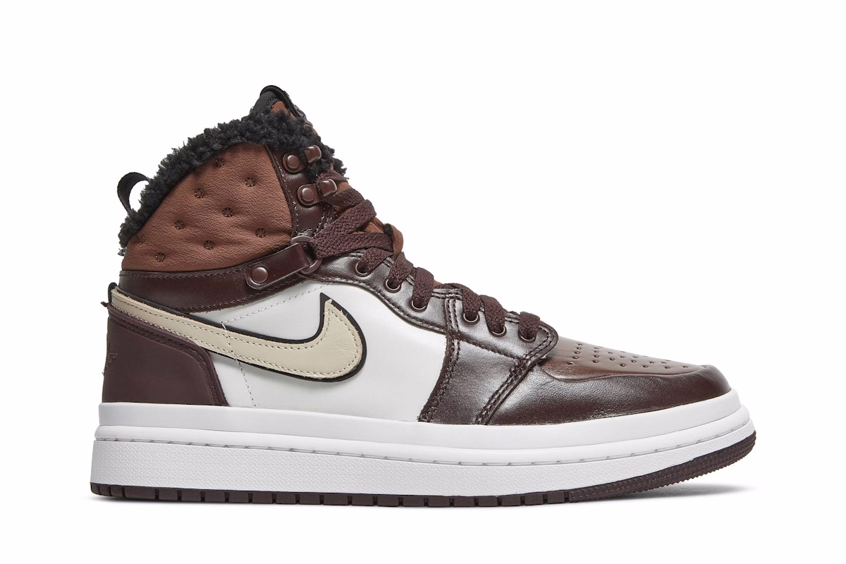 Mit dem Air Jordan 1 Acclimate 'Chocolate' (DC7723-200) für Damen vereinen Sie Style und Komfort. Dieser Sneaker ist perfekt für jede Jahreszeit und besticht durch sein Obermaterial aus hochwertigem, schokoladenbraunem Leder, das sowohl Strapazierfähigkeit als auch einen eleganten Look bietet. Das weiche Futter sorgt für Wärme und Komfort, während die charakteristische Air-Sole-Einheit hervorragende Dämpfung bietet. Mit seiner ikonischen Silhouette und dem wintertauglichen Design ist der Air Jordan 1 Acclimate 'Chocolate' die ultimative Kombination aus Mode und Funktion. Step