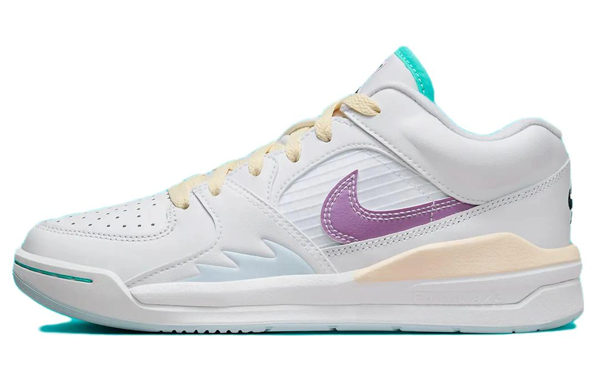 Mit dem legendären Air Jordan 90 Low „White Yellow Purple“ für Damen verleihst du deinem Style das gewisse Etwas. Das Obermaterial aus strahlend weißem Leder wird von leuchtenden gelben und violetten Akzenten geziert und verleiht diesem Sneaker einen lässigen Streetstyle. Die Air-Sole-Dämpfung sorgt für ganztägigen Tragekomfort, während die niedrige Silhouette einen eleganten und modernen Look garantiert. Ob für die Freizeit oder als stylisches Accessoire – diese Air Jordans sind ein Must-have für Sneakerheads und modebewusste Frauen.