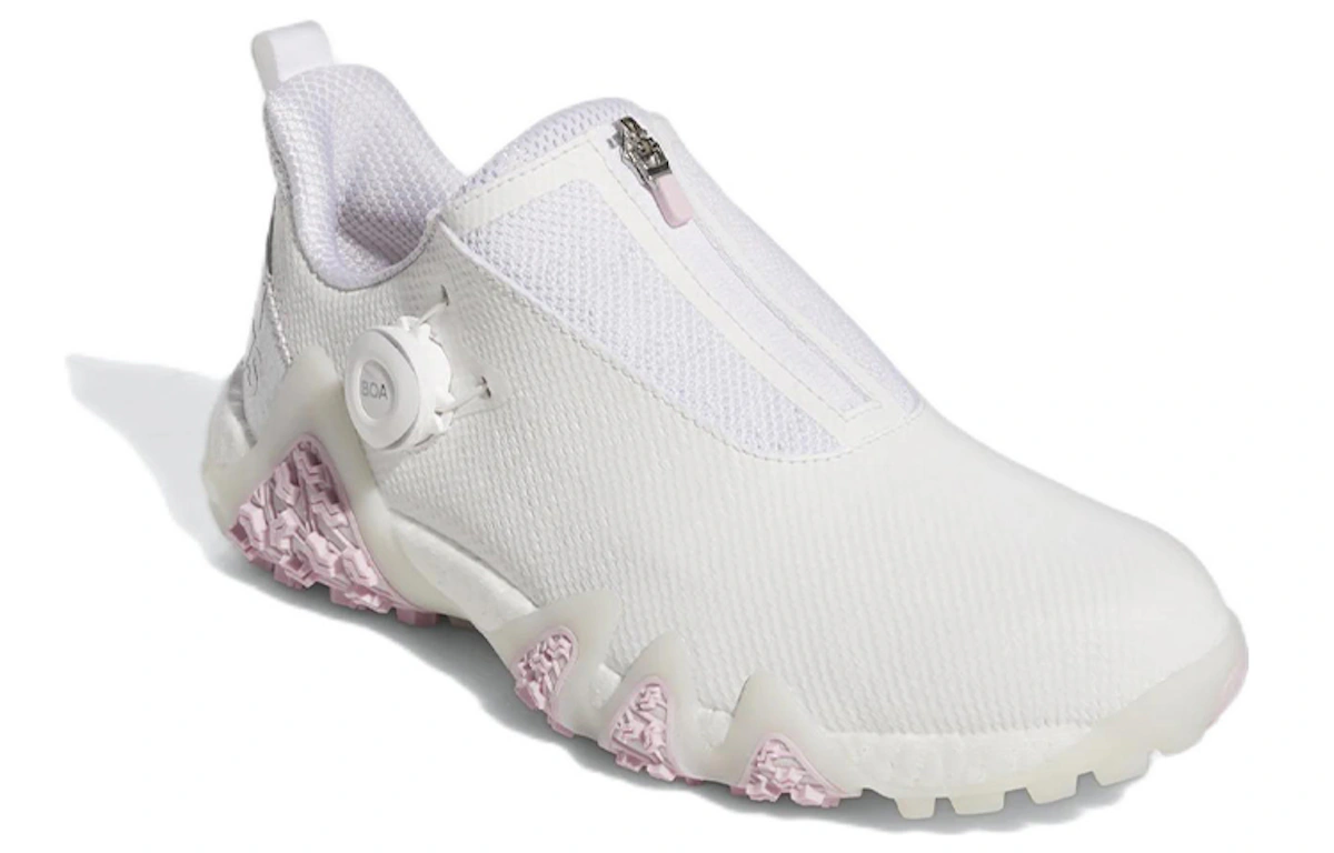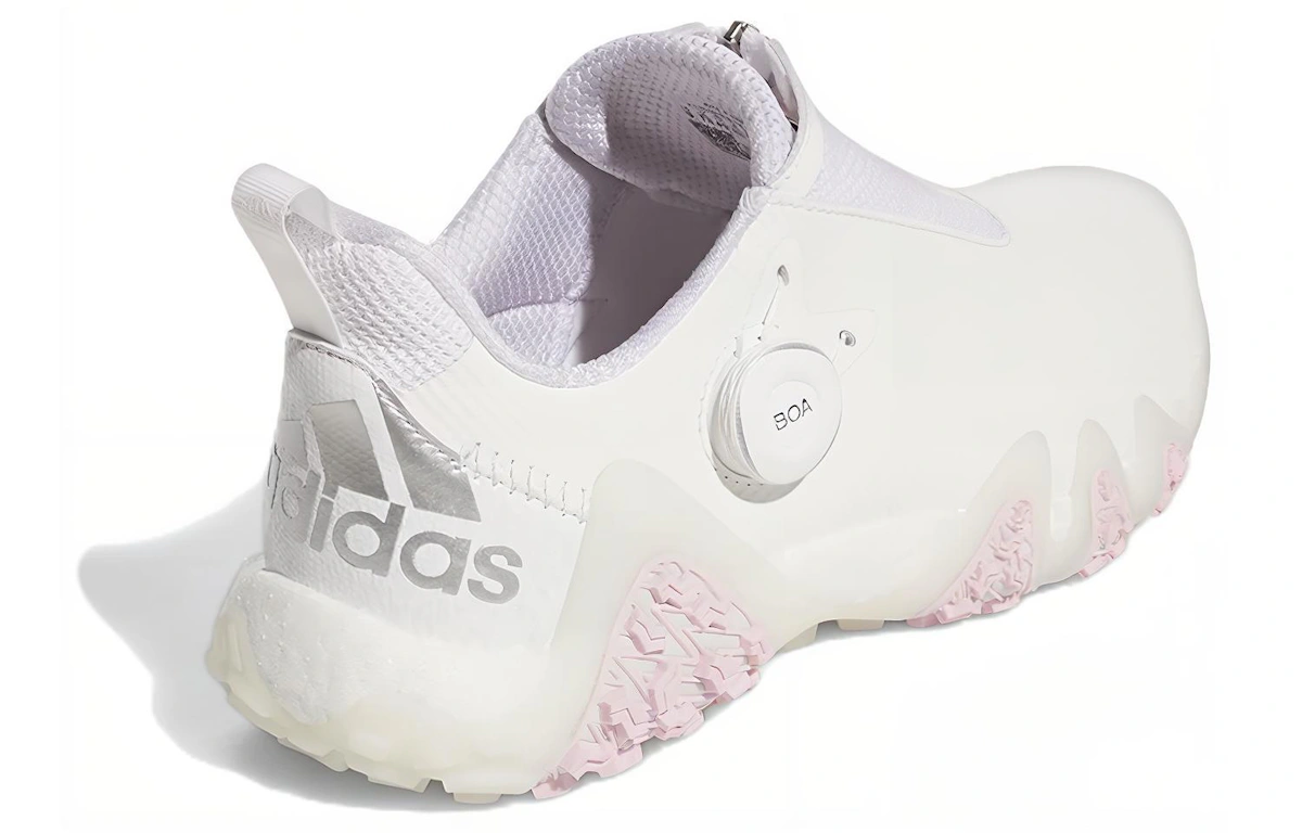 Wir präsentieren den adidas CodeChaos 22 BOA „White Clear Pink“ GX3944 ”“ den revolutionären Golfschuh für Damen. Dank des innovativen BOA Fit Systems bietet er sicheren und individuellen Halt und garantiert so maximalen Komfort und Stabilität auf dem Golfplatz. Das weiße Leder-Obermaterial mit pinkfarbenen Akzenten verleiht dem Schuh eine feminine Note, während die transparente TPU-Außensohle für hervorragende Traktion und Langlebigkeit sorgt. Erleben Sie die überragende Performance und den Style des adidas CodeChaos 22 BOA, der Ihr Golfspiel auf ein neues Level hebt.