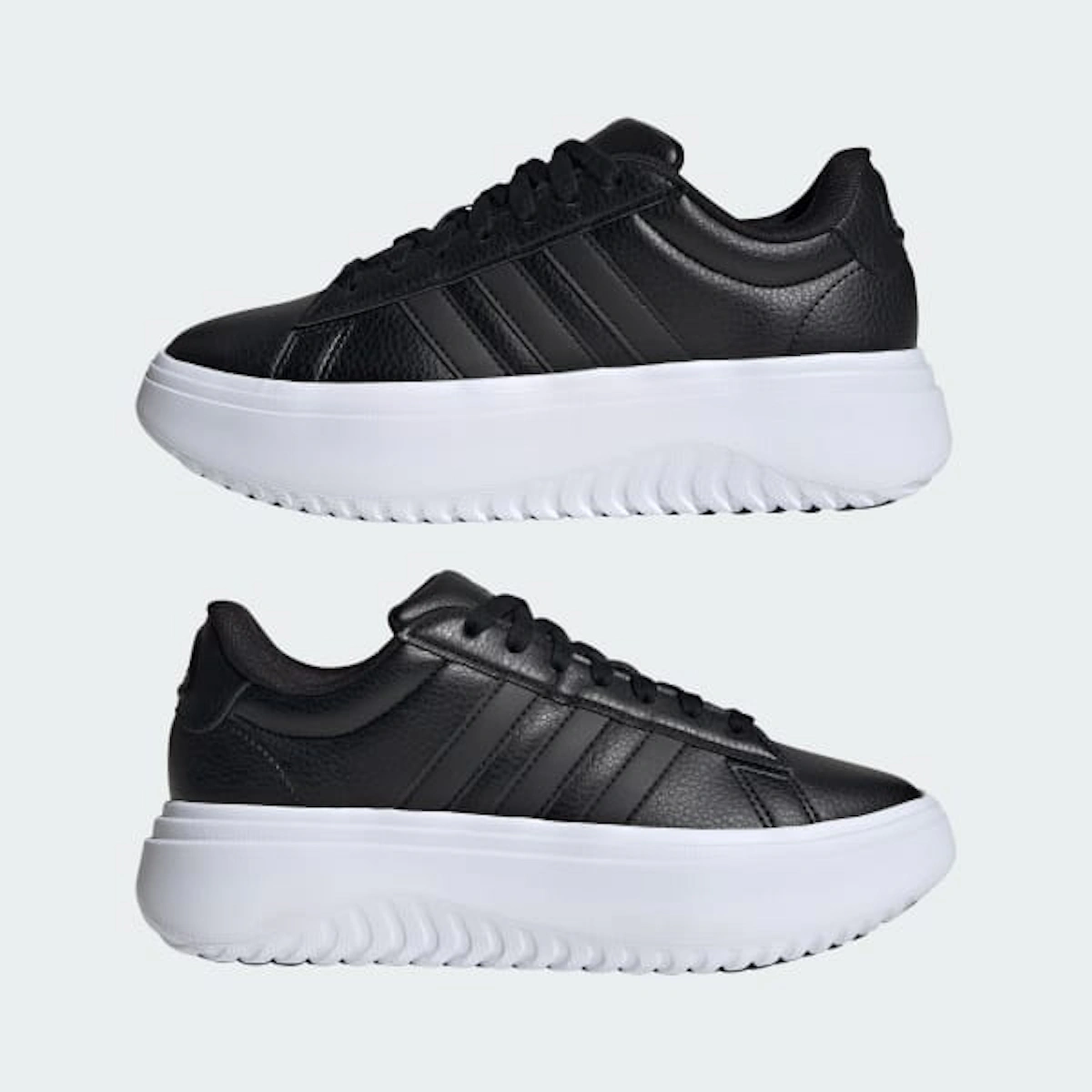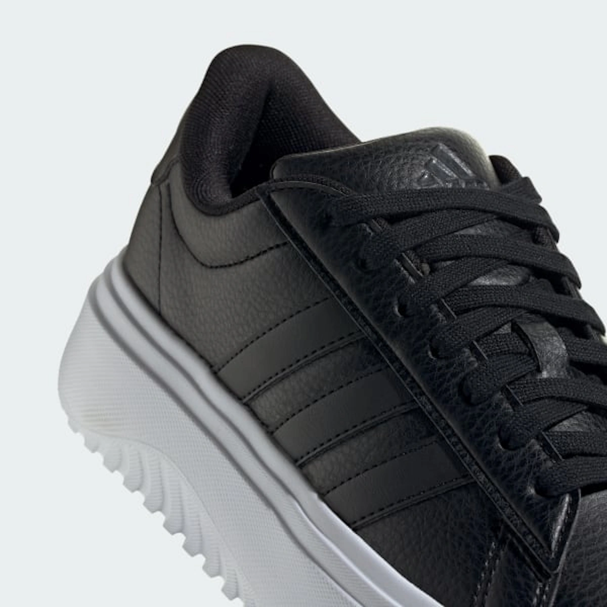 Der adidas GrandCourt Platform 'Core Black' ist perfekt für Röcke, Jeans oder Athleisure-Wear und vereint mühelos Funktion und Style. So kannst du deinen persönlichen Stil selbstbewusst zum Ausdruck bringen. Dieser Sneaker ist die ideale Wahl für Frauen, die ein starkes Statement setzen und gleichzeitig die bewährte Qualität und Performance von adidas Schuhen genießen möchten. Erlebe Vielseitigkeit neu und setze mit diesem Must-have-Paar ein modisches Statement.