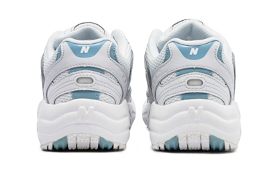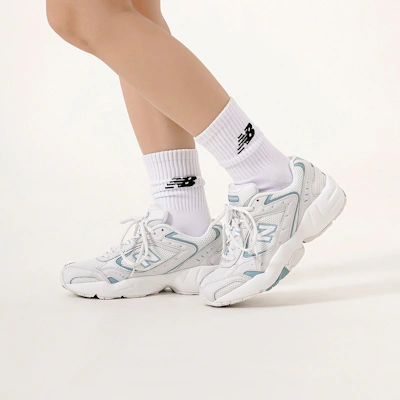 Der **New Balance 452 'White Blue' WX452WO** vereint klassischen Style mit modernem Komfort. Dieser klobige Sneaker besticht durch ein atmungsaktives, weißes Mesh-Obermaterial mit stylischen blauen Akzenten und dem ikonischen „N“-Logo. Die strapazierfähige Außensohle bietet hervorragende Traktion, während das gepolsterte Fußbett ganztägigen Halt garantiert. Mit diesem vielseitigen und modischen Schuh verleihst du deinem Sneaker-Look das gewisse Etwas.