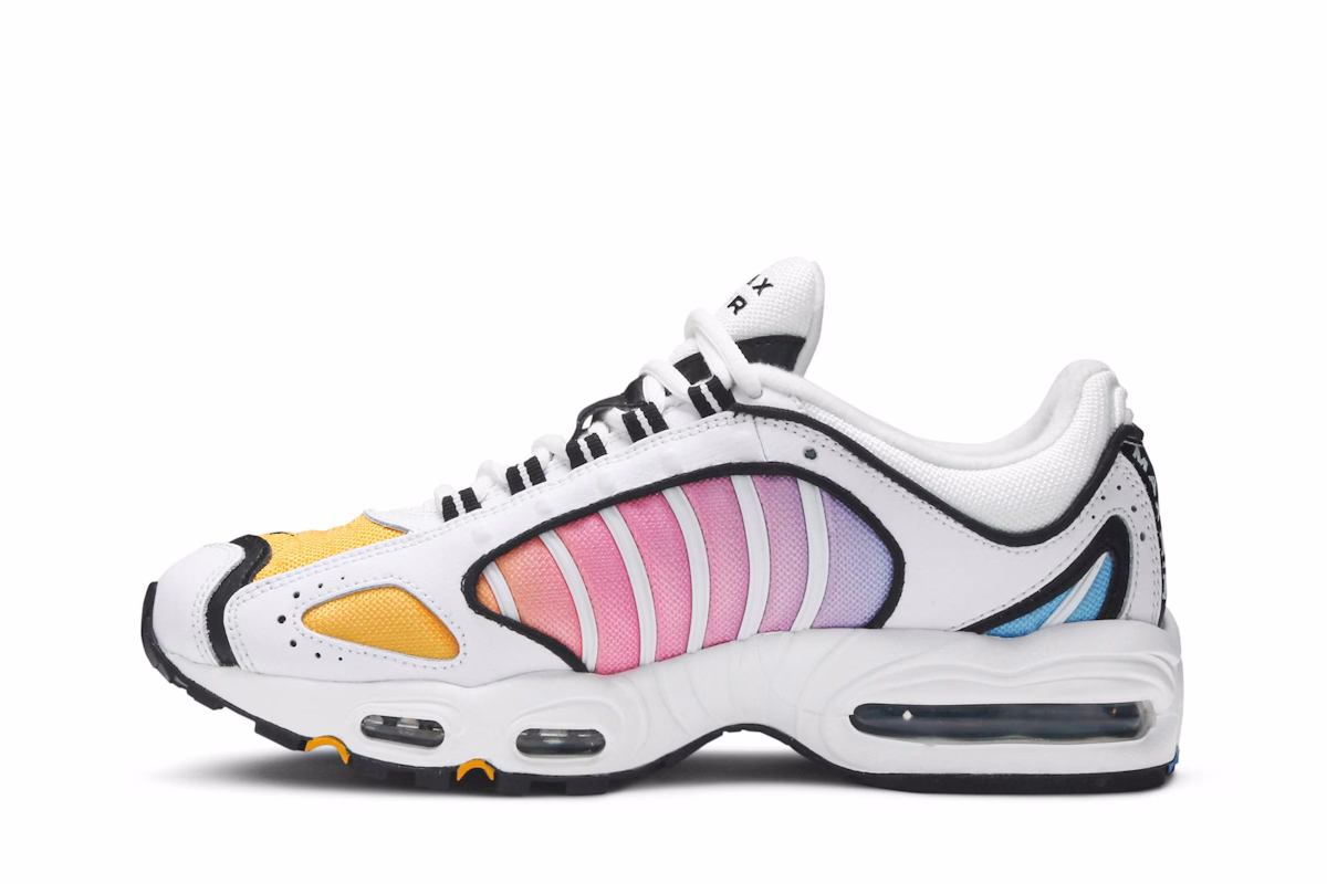 Verleihe deinem Style mit den Nike Air Max Tailwind 4 Summer Gradient CJ6534-115 Sneakern für Damen das gewisse Extra. Diese Nike Sneaker bestechen durch ein stylisches Farbverlaufsdesign, bequeme Air Max-Dämpfung und eine robuste Verarbeitung. Mit diesen Must-have-Sneakern der Saison zeigst du Selbstbewusstsein und zeigst deinen modischen Stil.