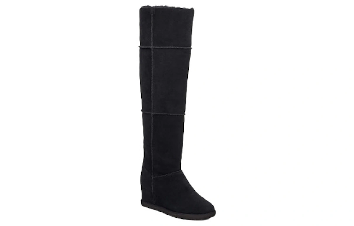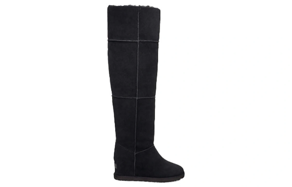 Genießen Sie unvergleichlichen Komfort und zeitlosen Stil mit den UGG Classic Femme OTK High Top Boots. Diese aus hochwertigem schwarzem Wildleder gefertigten Stiefel verfügen über ein luxuriöses Shearling-Futter, das Ihre Füße warm und kuschelig umhüllt. Die robuste Gummisohle sorgt für zuverlässigen Halt auf jedem Untergrund, während das ikonische UGG-Logo einen Hauch von Eleganz verleiht. Erleben Sie höchsten Tragekomfort und werten Sie Ihre Garderobe mit diesen außergewöhnlichen Stiefeln auf.