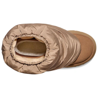 Der UGG Classic Mini Dipper Puffer 'Amphora Chestnut' vereint legendären Tragekomfort mit modernem Stil. Er besticht durch wasserabweisendes Nylon, ein weiches Lammfellfutter und ein schickes, vom Puffer-Stil inspiriertes Design.