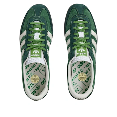 La Celtic x adidas Originals Roelee Spezial « Vert et Blanc » (JQ9131) est une sneaker élégante et stylée qui allie design rétro et confort moderne – idéale pour les fans du Celtic FC et de la qualité adidas. Arborant un coloris vert et blanc éclatant et des matériaux haut de gamme, dont une empeigne en daim souple et les emblématiques trois bandes, elle dégage une élégance intemporelle. La silhouette Spezial est sublimée par de discrets logos Celtic, rendant hommage à la riche histoire de ce club de football légendaire tout en y ajoutant une touche unique. La semelle extérieure en caoutchouc offre une excellente adhérence et une grande durabilité, faisant de cette chaussure un compagnon polyvalent pour les loisirs comme pour le sport. La semelle intérieure rembourrée assure un confort optimal tout au long de la journée, tandis que sa fabrication de haute qualité garantit une longue durée de vie. Que vous soyez un passionné de vintage ou un fervent supporter de votre équipe préférée, la Celtic x adidas Originals Roelee Spezial « Vert et Blanc » est un incontournable pour tout collectionneur de sneakers. Idéale pour ceux qui apprécient l'élégance sportive et le design haut de gamme : cette collaboration unit tradition et innovation en parfaite harmonie. Saisissez dès maintenant une pièce d'exception, témoin de l'histoire du football et de la mode.