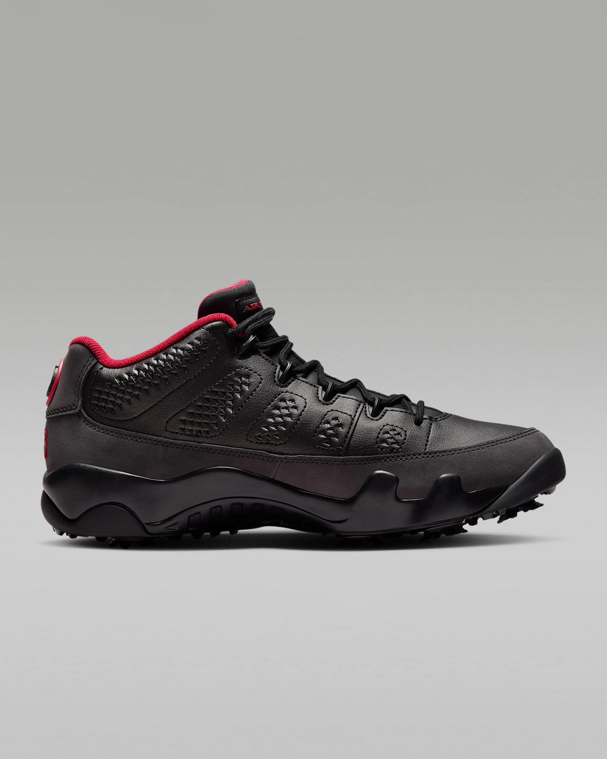 Améliorez votre jeu avec la Air Jordan 9 G « Black True Red » FJ5934-002 : l’alliance parfaite entre l’héritage légendaire du basketball et la fonctionnalité du golf. Cette chaussure offre un confort inégalé et des performances optimales sur et en dehors du parcours, alliant style et fonctionnalité de façon unique. Son élégante empeigne noire rehaussée de touches de rouge éclatantes crée un look audacieux et intemporel. Grâce à des matériaux résistants et une fabrication haut de gamme, la chaussure offre un ajustement optimal et une sensation de légèreté, idéale pour les longues sessions de golf. La semelle extérieure innovante garantit une excellente adhérence et une stabilité parfaite, pour des foulées assurées sur tous les terrains. Que vous enchaîniez les birdies sur le green ou que vous affirmiez votre style au quotidien, la Air Jordan 9 G « Black True Red » vous permet de faire les deux avec style et précision. Coloris : Noir/Gris foncé/Rouge. Code article : FJ5934-002. Matière de l’empeigne : Cuir. Semelle intermédiaire : Air. Couleur : Noir. Designer : Tinker Hatfield.