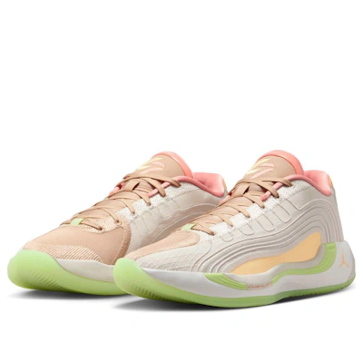 La semelle intermédiaire avec amorti en mousse Formula 23 assure un retour d'énergie réactif et un confort optimal à chaque mouvement, tandis que le système IsoPlate sur toute la longueur améliore la stabilité pour les jeux multidirectionnels. La semelle extérieure en caoutchouc adhérent est idéale pour les changements de direction rapides sur les terrains intérieurs et extérieurs. Conçue pour les athlètes dynamiques, la chaussure est équipée d'un système de laçage optimisé et d'un col rembourré pour un maintien sûr, un confort durable et un ajustement précis. Sur le terrain comme dans la rue, ce modèle signature de Luka Doncic est un incontournable. La Luka 4 PF « Light Orewood Tangerine Tint » allie technologie innovante et design emblématique Jordan. Bien plus qu'une simple chaussure, c'est un véritable symbole pour les athlètes et les fans du monde entier. Coloris : Light Orewood Brown/Tangerine Tint/Chanvre. Code article : IO0198-100. Tige : Textile. Semelle intermédiaire : Cushlon 3.0. Coloris : Beige.