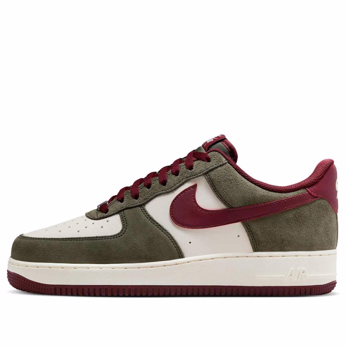 La Nike Air Force 1 Low '07 LV8 apporte une touche unique à votre style. Son coloris kaki cargo, ivoire pâle et rouge foncé allie design classique et modernité, pour un look streetwear intemporel.