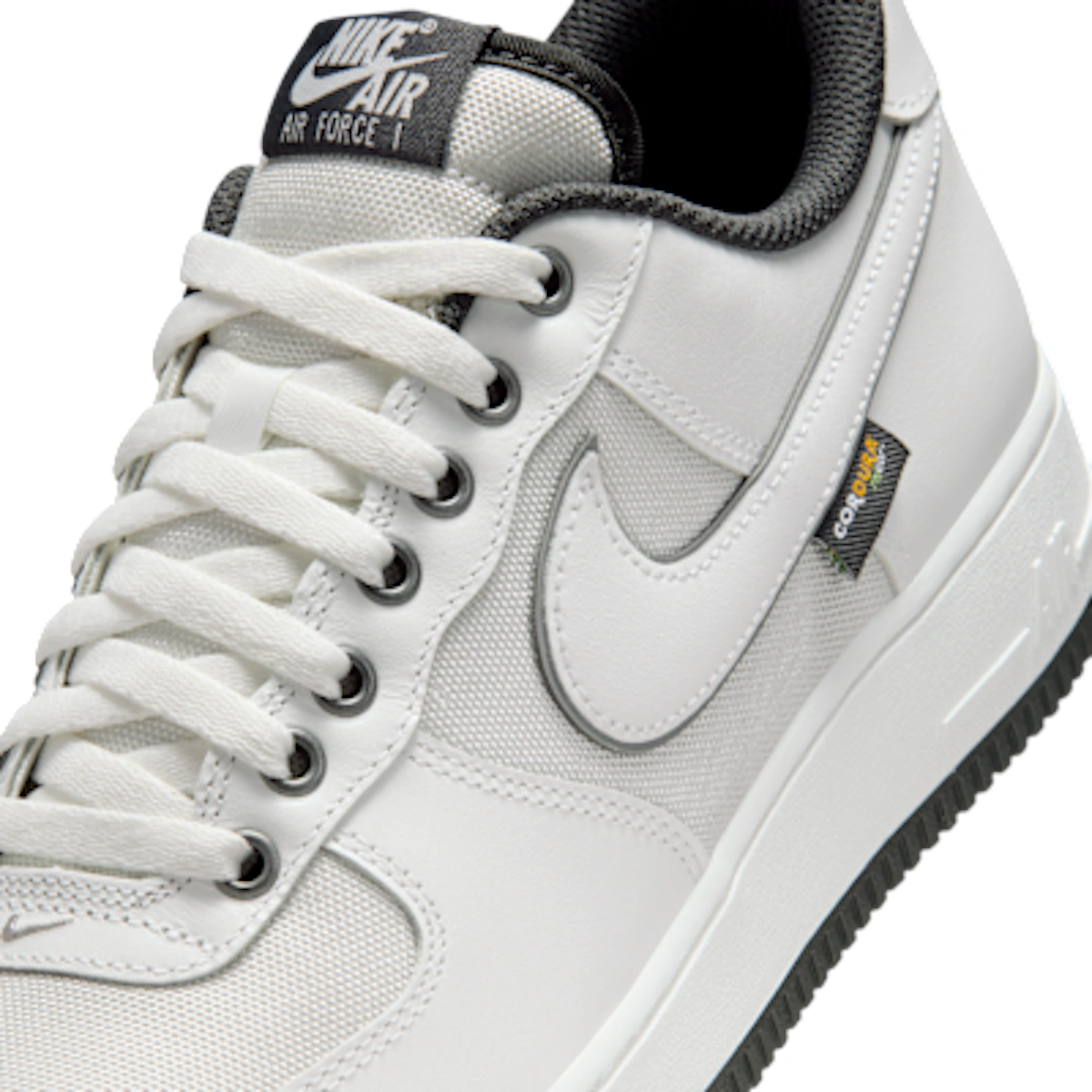 Nike Air Force 1 ”” Summit White/Dark Smoke Gray/Metallic Silver/Summit White.