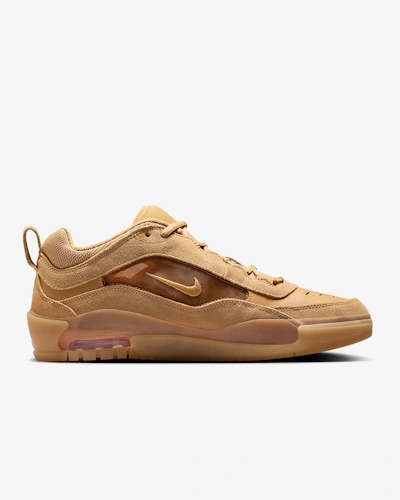 Améliorez votre style et vos performances en skate avec la Nike Air Max Ishod « Flex Flex Safety » FB2393-200 : l’alliance parfaite de durabilité, de confort et de design innovant. Développée en collaboration avec le skateur professionnel Ishod Wair, cette chaussure redéfinit la polyvalence, en fusionnant harmonieusement les performances du skate et le confort au quotidien. Son empeigne est conçue à partir de matériaux haut de gamme pour une durabilité optimale, tout en affichant une esthétique moderne et élégante qui séduit dans le monde entier. Dotée de l’amorti Air Max emblématique, elle offre un confort inégalé et une absorption des chocs optimale, que vous soyez au skatepark ou dans la rue. La semelle extérieure à traction avancée assure une excellente adhérence et un contrôle parfait de la planche, pour une confiance absolue à chaque mouvement. Sa conception respirante garantit une aération optimale pour un confort durable, faisant de cette chaussure le choix idéal pour un mode de vie actif. Les tons naturels et discrets du coloris « Flex Flex Safety » sont si polyvalents qu’ils s’accordent avec toutes vos tenues, offrant un équilibre parfait entre style et fonctionnalité. La Nike Air Max Ishod « Flex Flex Safety » a été conçue avec un souci du détail exceptionnel pour celles et ceux qui exigent des performances optimales et un design remarquable. Cette sneaker affirme un style dynamique et personnel. Idéale pour les skateurs, les passionnés de sneakers et tous les adeptes du streetwear moderne, c'est un incontournable pour celles et ceux qui explorent sans cesse de nouveaux horizons. Coloris : Lin/Lin/Orange sécurité/Blé. Code article : FB2393-200. Tige : Daim. Semelle intermédiaire : Air. Couleur : Marron.