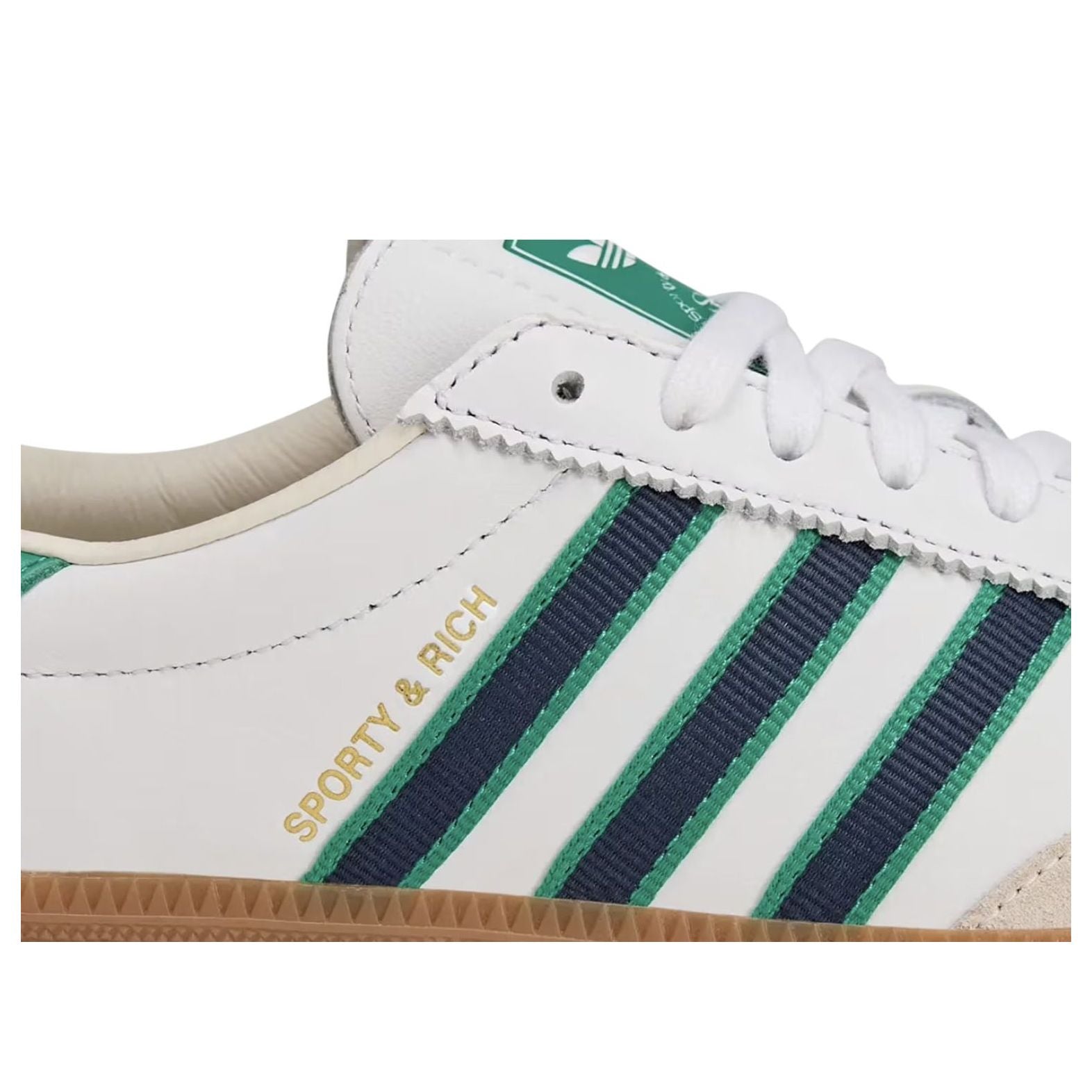 The Sporty & Rich x adidas AS 250 ‘White Green’ JQ1353 is a timeless fusion of retro design and contemporary style, crafted for those who value understated elegance and functionality. This collaborative sneaker boasts a crisp white premium leather upper, complemented by striking green suede accents on the signature 3-Stripes and heel tab, exuding a clean and versatile aesthetic. Paying homage to classic tennis-inspired silhouettes, the low-top design features perforated details for breathability and a minimalist vibe.